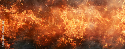 © Asif, Obraz premium Flames, fire, and smoke on a black background. Abstract burning elements for design.