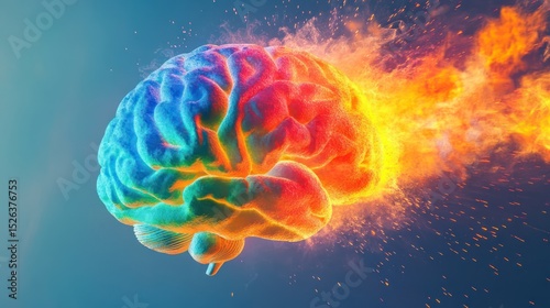 Fototapeta premium Flaming Brain, burning bright, space background, idea concept