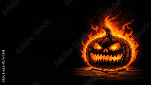 Fototapeta premium Flaming Evil Pumpkin on Black