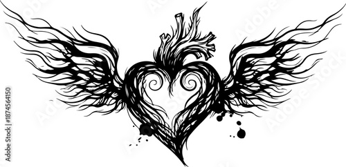 © Rupchad, Obraz premium Flaming Heart Tattoo Design Set