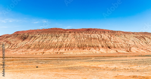 Fototapeta premium Flaming mountains, Turpan, Xinjiang, China: these intense red arid mountains...