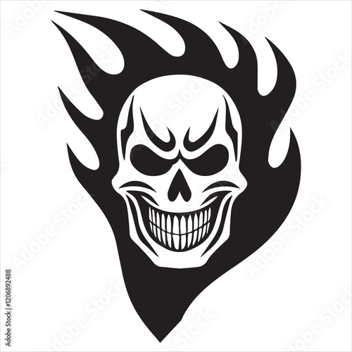 Fototapeta premium Flaming Skull Vector illustration, Creepy Flaming Skull silhouette Design