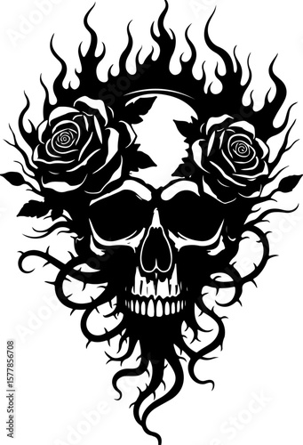 Obraz premium Flaming Skull with Roses Tattoo Design" vector bundle