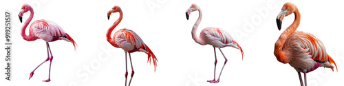 Obraz premium Flamingo bird isolated on a transparent background - Featuring its striking pink feathers, long legs, and elegant posture - Clean and detailed composition with soft, even lighting - Studio photography