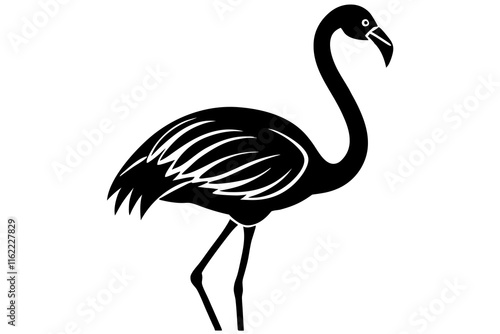 Fototapeta premium Flamingo black silhouette vector, Simple silhouette Design vector icon with white background. Flamingo Bird silhouette