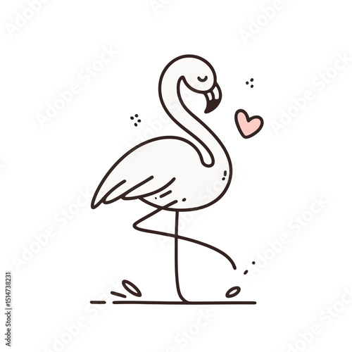 Fototapeta premium Flamingo dancing with a heart illustration in minimalist style