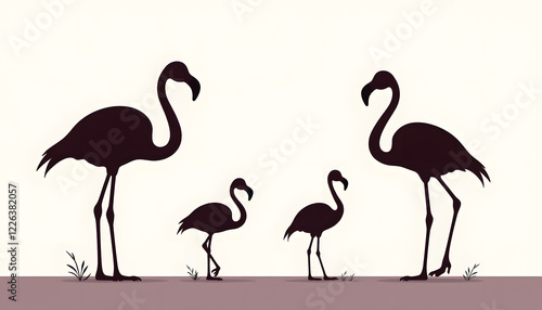 © huaomanz, Fototapeta premium Flamingo Family Silhouette