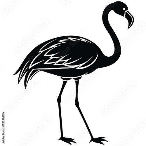 Naklejka premium Flamingo illustration black and white vector bird graphic art silhouette