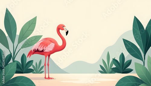 © huaomanz, Fototapeta premium Flamingo in Minimalist Garden