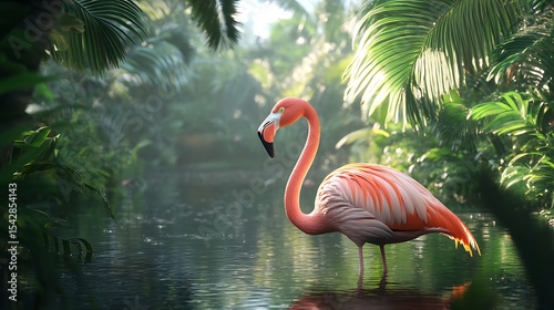 © Joydeb, Fototapeta premium Flamingo in peaceful lush sundown scene high resolution picture