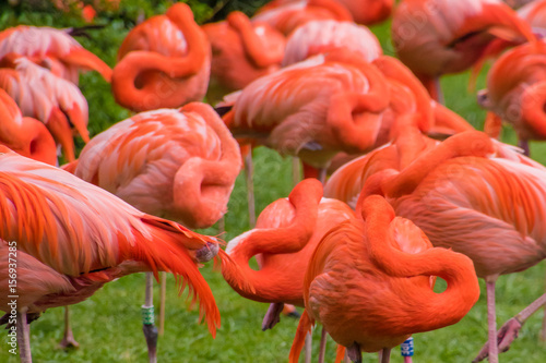 Obraz premium Flamingo phoenicopter red feathers sleeping while standing