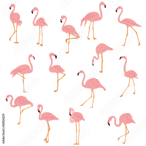 © zolotons, Obraz premium flamingo pink set, collection on white background vector