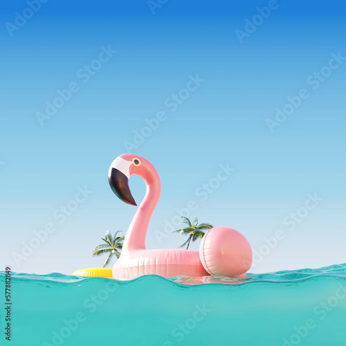 Obraz premium Flamingo pool float in summer times. 3d rendering