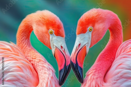 © Lazy_Bear, Fototapeta premium Flamingo portrait on pastel colored background. Exotic bird. Creativity banner. Created with Generative AI