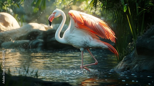 © Joydeb, Fototapeta premium Flamingo resting under golden sunset canopy high resolution picture