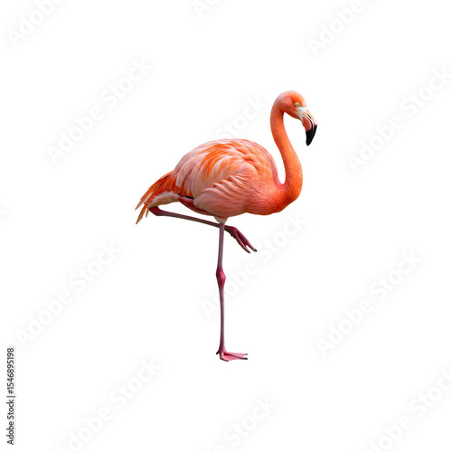 © chalindu, Obraz premium Flamingo Standing Gracefully on One Leg with Head Turned Backwards