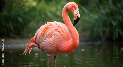 Fototapeta premium Flamingo Standing in Water Bird Portrait Nature