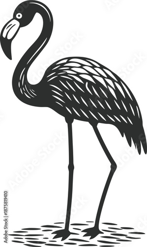 © Sariful, Obraz premium flamingo standing silhouette vector illustration