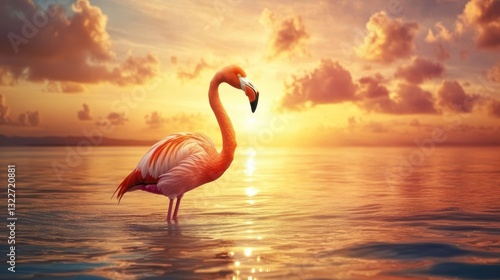 © Ahmad, Fototapeta premium Flamingo Sunset Paradise: A Serene Tropical Scene