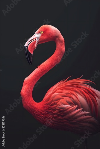 © masanyanka, Obraz premium Flamingo Texture: Wild Birds on Solid Background