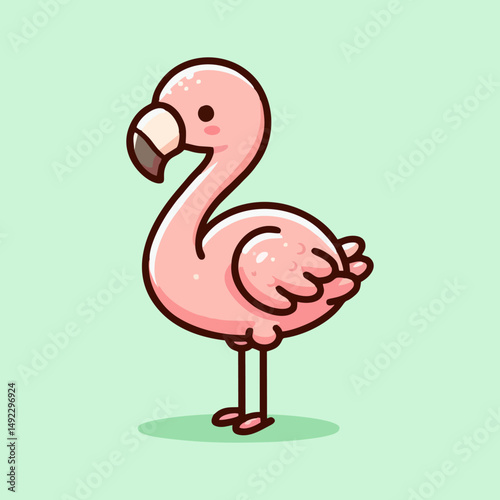 Fototapeta premium Flamingo vector, cartoon bird mascot, tropical pink animal illustration for seamless wallpaper, nursery decor, summer theme pattern, beach wildlife character drawing for kids art and home print