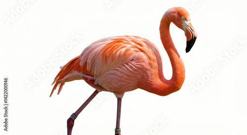 © Vanier Johanne, Obraz premium Flamingo walking isolated on white background - exotic bird