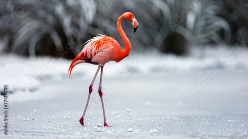 Fototapeta premium Flamingo walking on snowy ground