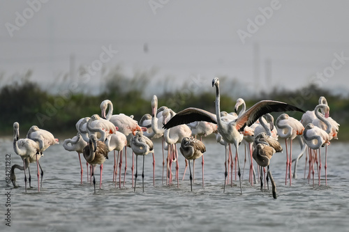 © Dev Mukund, Fototapeta premium Flamingos are famous and most beautiful pink color birds