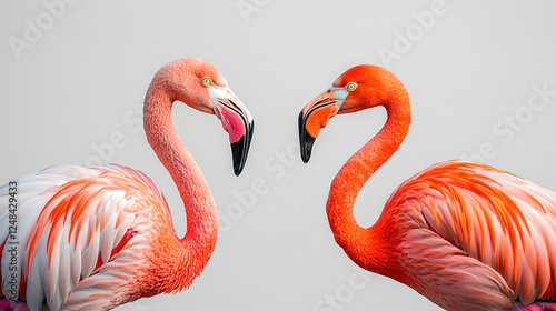 © Ivan, Obraz premium Flamingos display vibrant colors while interacting in a serene setting during daylight hours. Generative AI