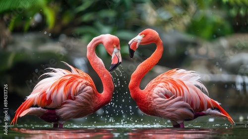 © Irfan, Obraz premium Flamingos enjoy playful interactions.romantic.