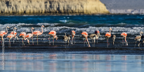 Naklejka premium Flamingos flock, Peninsula Valdes, Patagonia, Argentina