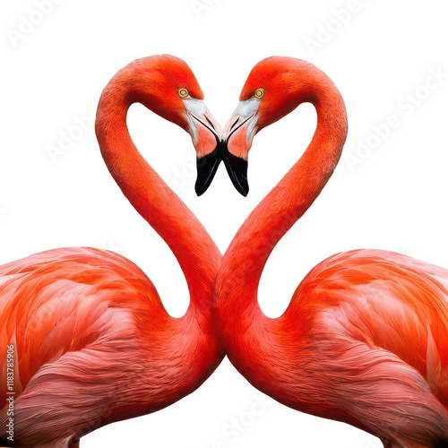 © TransPicHub, Obraz premium Flamingos forming a heart shape, white isolate background