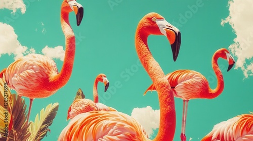 Fototapeta premium Flamingos in a vibrant tropical setting