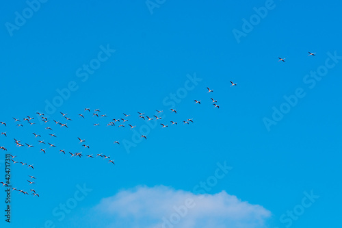 © Giammarco Figus, Obraz premium Flamingos in flight 3