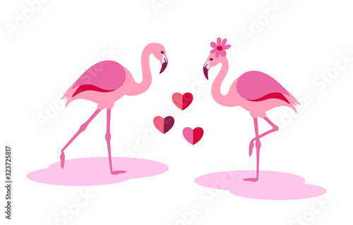 © DanaDuDesign, Fototapeta premium Flamingos in Love isolated graphic