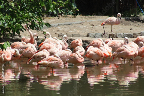 Naklejka premium Flamingos no lago