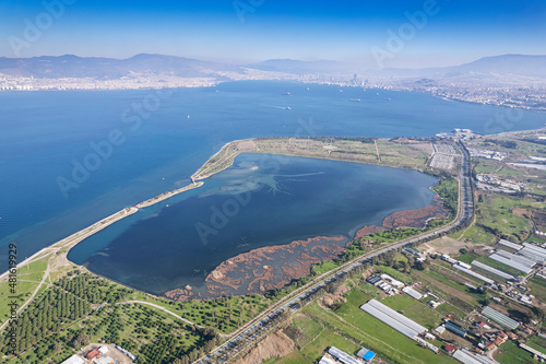 © Suzi, Fototapeta premium Flamingos seen at the Cakalburnu lagoon of Izmir City Forest Inciralti.