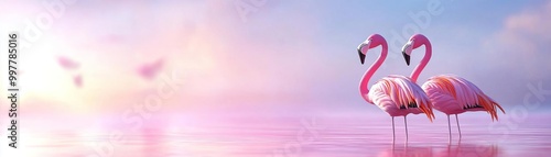 © SteadFast, Fototapeta premium Flamingos standing in a pink lake