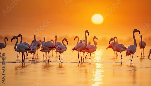 © ryandi, Naklejka premium Flamingos Sunset Silhouette Scenic Wildlife Photography