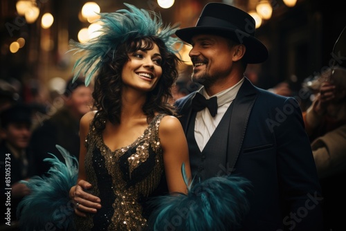 © MMerellinn, Naklejka premium Flapper lifestyle, dress, and cultural evolution of the 1920s, 30s, and 40s: Embracing prohibition, jazz age elegance, and the daring spirit of an Era in Fashion, nightlife, and social transformation.
