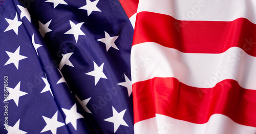 Fototapeta premium Flapping flag USA with wave. American flag for Memorial Day or 4th of July. Closeup of American flag
