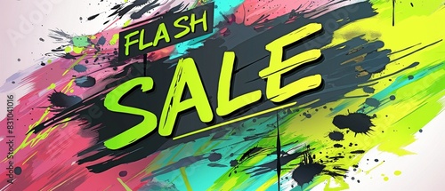 Fototapeta premium "FLASH SALE" in bold, black letters with a neon green outline, set against a...