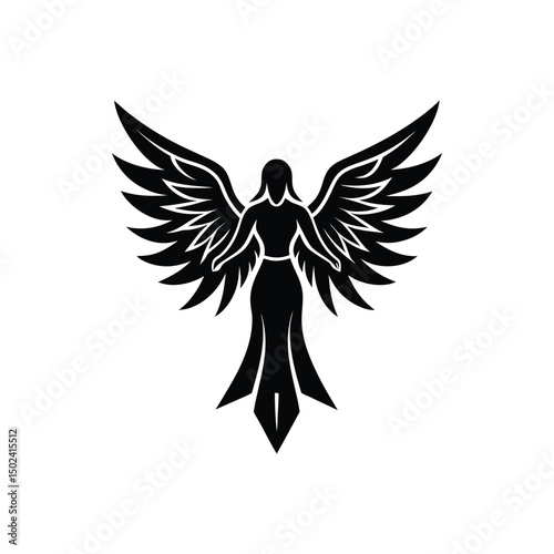 © mdabu, Naklejka premium Flat and Minimal angel logo vector illustration isolated on white background