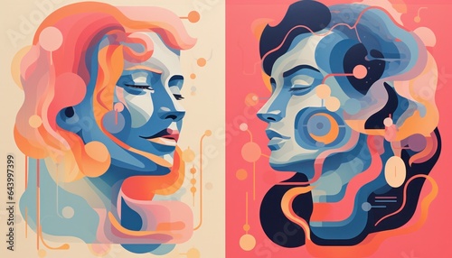 © Rafaj Stock, Obraz premium flat art Illustrations in minimalist risograph style