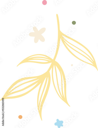 © vectorfusionart, Fototapeta premium Flat botanical branch is showing yellow leaves with pastel dots and stars on transparent background