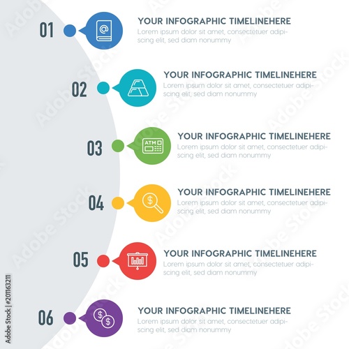 © djvectors, Naklejka premium Flat business, money infographic timeline template with 7 options for presentations, advertising, annual reports