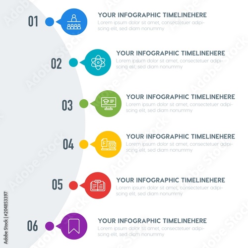 Naklejka premium Flat charts, bookmarks, education infographic timeline template with 7...