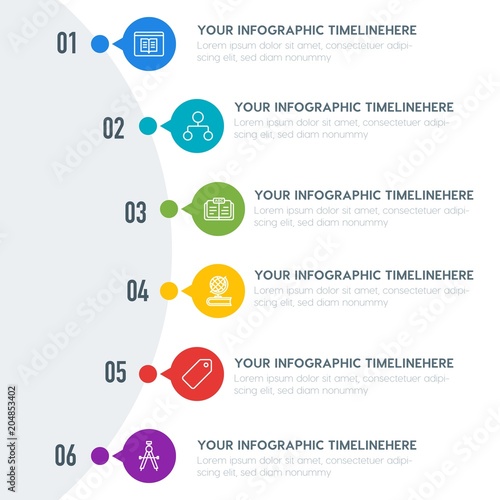 Naklejka premium Flat charts, bookmarks, education infographic timeline template with 7...