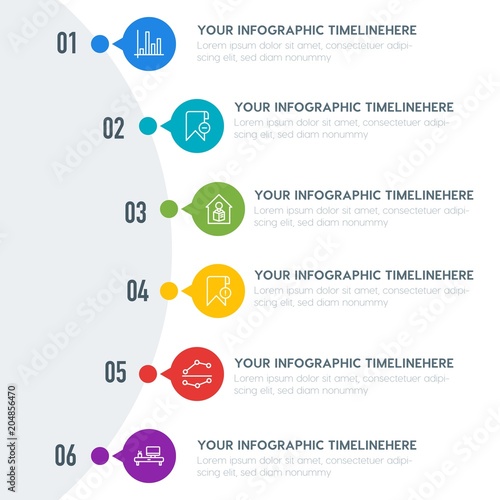 Naklejka premium Flat charts, bookmarks, education infographic timeline template with 7 options for presentations, advertising, annual reports