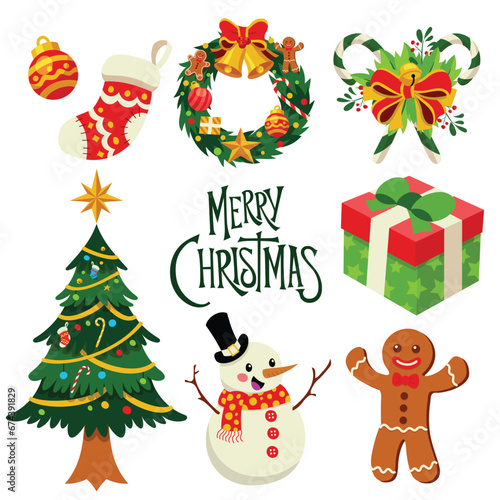 © bazzier, Fototapeta premium Flat Christmas Element Collection Set